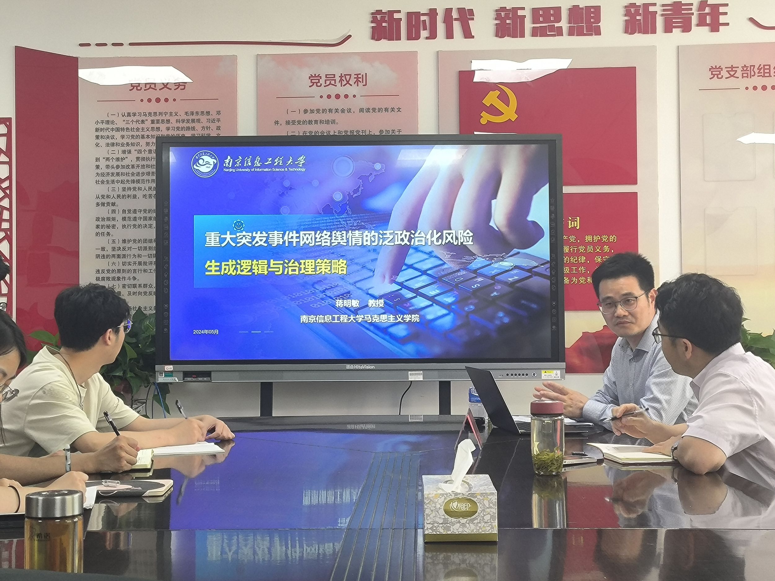 2024年5月25日,beet365邀请南京信息工程大学蒋明敏教授开展“重大突发事件网络舆情的泛政治化风险生成逻辑与治理策略”的学术讲座,讲座由公司中共党史与党建方向学位点负责人孙亮老师主持。马克思主义中国化研究、中共党史与党建、中国近现代史基本问题研究硕士点部分硕士、博士研究生参加了此次讲座。