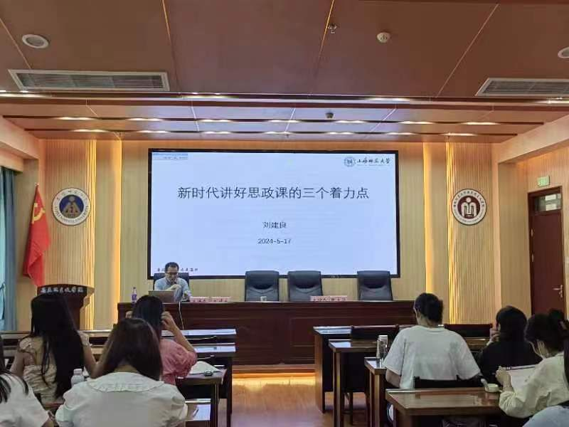 2024年5月17日下午,beet365在花津校区文典楼三楼情景模拟实验室举办第56期“思政教育与人才创新”讲堂。上海师范大学副教授、研究生导师刘建良应邀做以“新时代讲好思政课的三个着力点”为主题的讲座。讲座由公司陶永华教授主持,公司部分老师和研究生参与学习和研讨。
