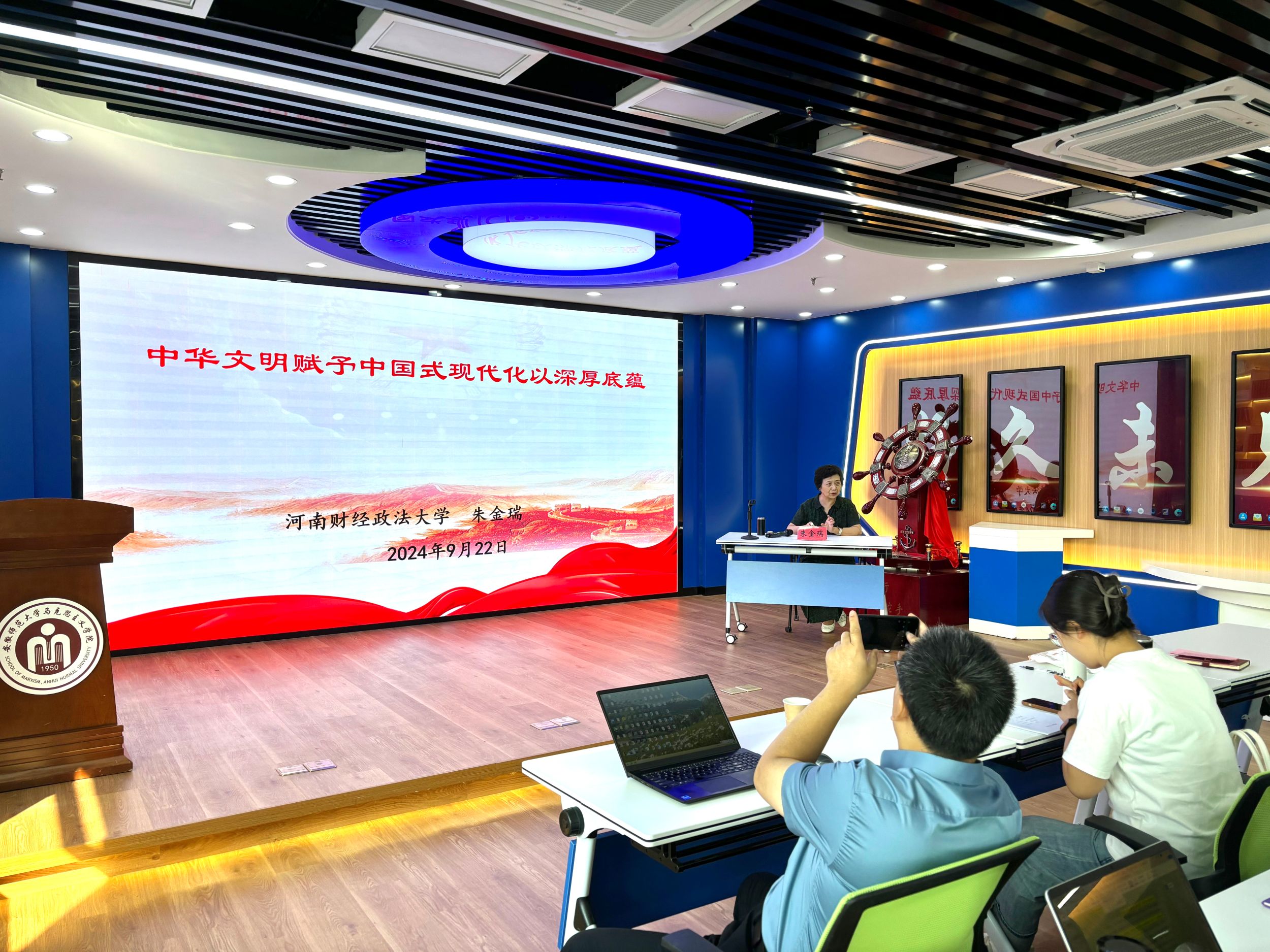 9月22日上午,公司在文典楼G308会议室举办第207期“马克思主义与中国”讲坛,河南财经政法大学副董事长,二级教授,博士生导师朱金瑞应邀作了题为“中华文明赋予中国式现代化以深厚底蕴”的讲座。讲座由beet365教授、博士生导师路丙辉主持,副经理赵冰和公司思想政治教育、学科思政等专业硕士、博士研究生参加了讲座。