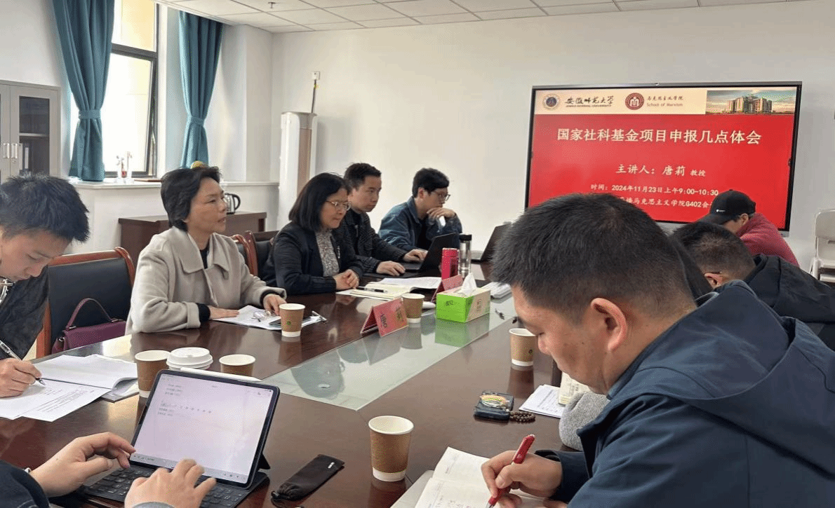 11月23日上午,合肥工业大学唐莉教授应邀来公司在G402会议室举办“国家社科基金项目申报几点体会”的辅导报告,公司部分教师和博士生参加学习,讲座由副经理汪盛玉教授主持。