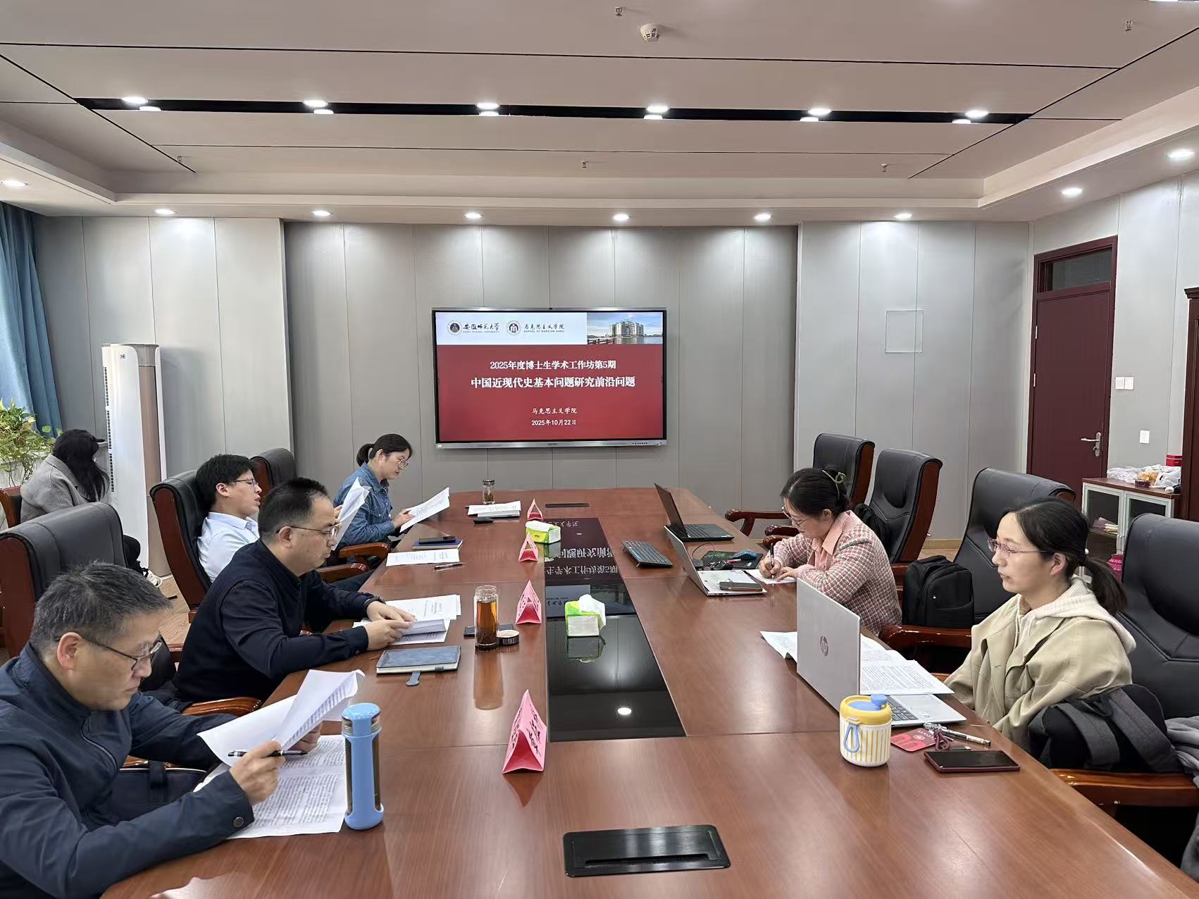 2025 年 10 月 22 日下午,公司在文典楼 G407 成功举办“中国近现代史基本问题研究前沿问题”学术工作坊活动。姚宏志教授、严宏教授、章征科教授、沈燕培教授应邀出席并担任指导专家,活动由中国近现代史基本问题研究方向负责人沈燕培教授主持,公司相关博士生代表全程参与交流研讨。