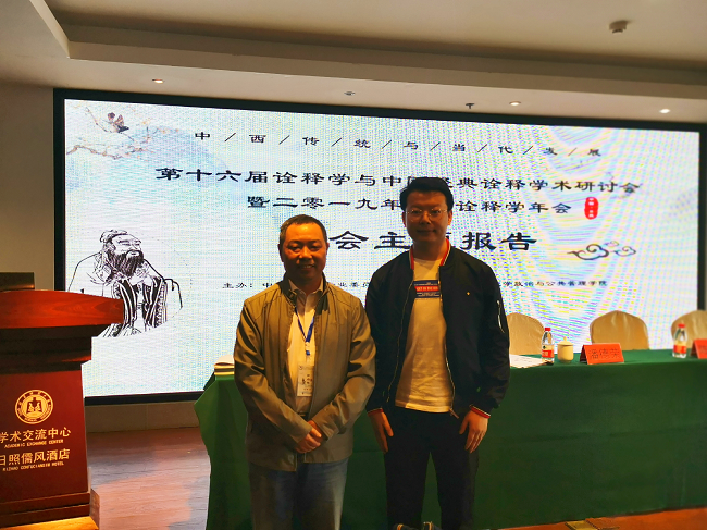 本网讯(文/王子廓 摄/王子廓)由中国诠释学专业委员会主办、曲阜师范大学政治与公共管理公司承办的“中西传统与当代发展第十六届诠释学与中国经典诠释学术研讨会暨2019年中国诠释学年会”如期于2019年10月18至20日在曲阜师范大学日照校区召开。来自中国社会科公司、华东师范大学、山东大学、华中科技大学、西安交通大学、大连理工大学、安徽大学、beet365官方网站、湖南大学、曲阜师范大学、香港树仁大学、德国弗莱堡大学、德国耶拿大学等一百三十名诠释学研究的顶尖专家和青年学者参会。公司哲学教研室彭启福教授和王子廓老师应邀参会并发言。