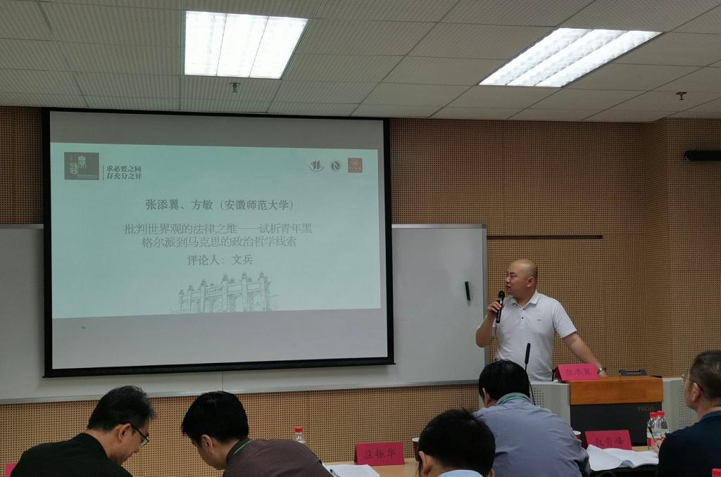 张添翼副教授作了题为《批判世界观的法律之维——试析青年黑格尔派到马克思的政治哲学线索》的主题报告,中国政法大学文兵教授对张老师的报告进行了精彩的点评。这次会议主题明确,成果丰硕,是汉语学界实践哲学领域高水准的一次学术盛宴。