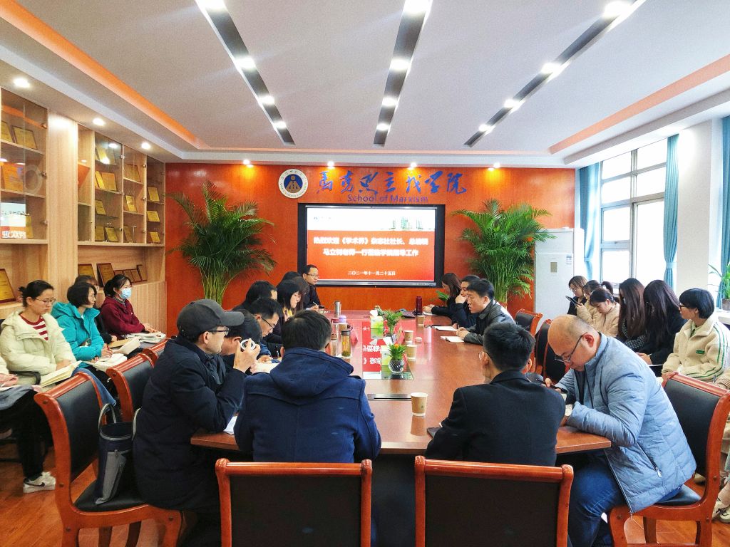 本网讯(文/鲍草草摄/李梦婷)2021年11月25日下午,《学术界》杂志社社长兼总编辑马立钊老师、编辑室主任汪家耀老师一行应邀来beet365开展调研工作。会议于公司一楼荣誉室举行,由公司科研副经理汪盛玉教授主持,公司部分骨干教师以及哲学学位点和马克思主义理论学位点的研究生参加了学习交流。