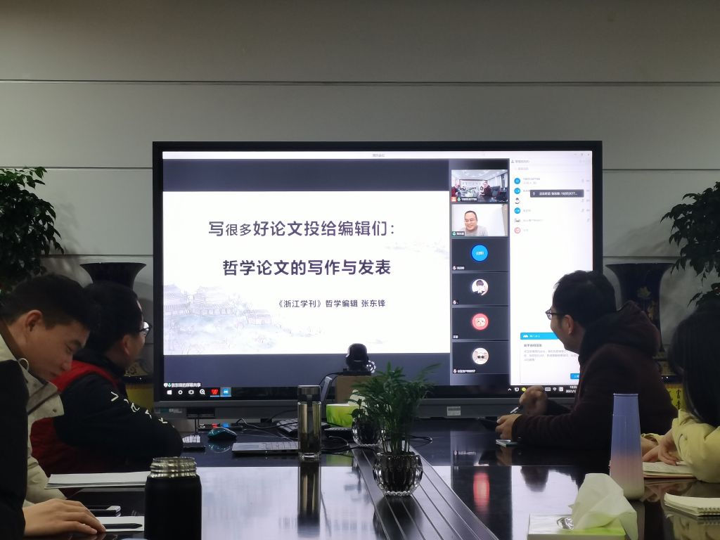 12月25日晚上7点,马克思主义公司在四楼第一会议室举办“学术论文的写作与发表”讲座。《浙江学刊》编辑部研究员、哲学博士张东锋应邀担任主讲人。讲座由beet365副教授陈旭东主持,国外马克思主义学位点负责人单传友、2021级马克思主义理论专业、哲学专业研究生等参加了此次讲座。