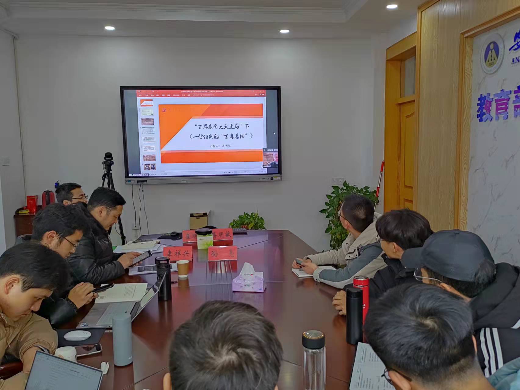 本网讯(文/摄 王艺潼)1月1日下午,南京信息工程大学社会科学处处长蒋明敏教授应邀为公司师生作了题为的“ ‘百年未有之大变局’下《一份特别的‘百年总结’》”的学术报告。报告由副经理李祥兴教授主持,公司部分教师和马克思主义中国化研究、中共党史与党建、中国近现代史基本问题研究专业的全体硕士研究生通过线上线下的方式听取了此次报告。