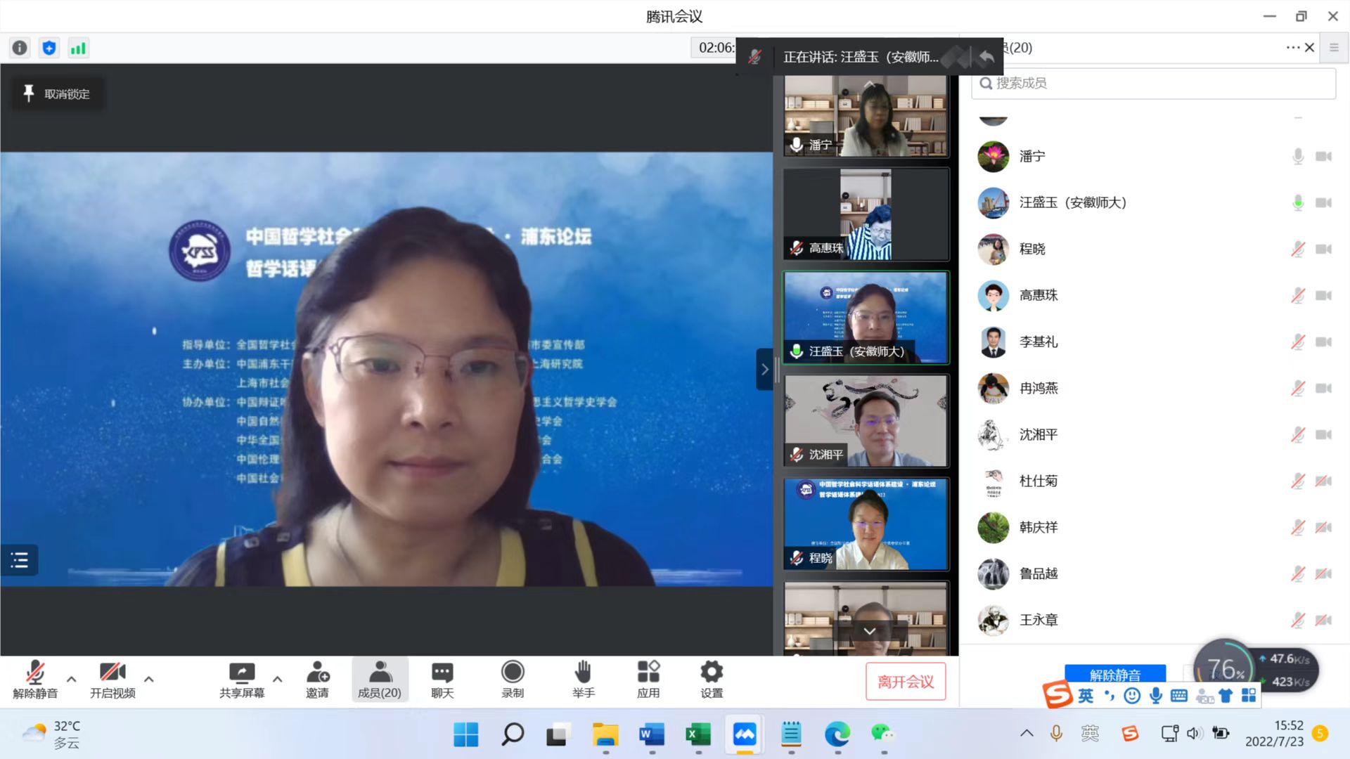 (本网讯 beet365)2022年7月22-24日汪盛玉教授应邀参加了“中国哲学社会科学话语体系建设·浦东论坛——哲学话语体系建设·2022”学术会议。本次会议由全国哲学社会科学话语体系建设协调办公室、中共上海市委宣传部指导,中国浦东干部公司、中国社会科公司—上海市人民政府上海研究院、上海市社会科学界联合会、中国社会科公司哲学研究所主办,中国人学学会等13个学会协办,会议主题为“中国特色哲学学科话语体系建设与学术创新”,来自中国社会科公司、北京大学、北京师范大学、beet365、中山大学、华中科技大学、浙江大学、复旦大学、华东师范大学、beet365官方网站等全国和沪上高校、科研机构的近200名专家学者以线上和线下相结合方式参加了会议研讨,近30名著名学者做了大会报告,150余名学者分别在12个分论坛做了会议发言。