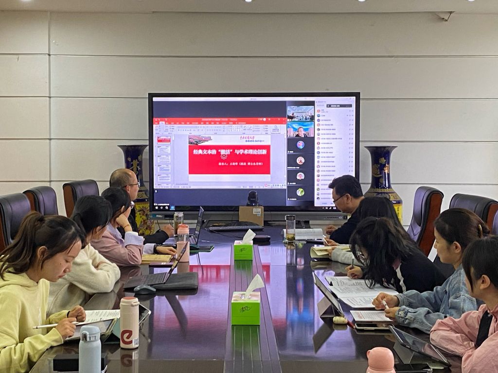 本网讯(文/摄 王文慧)2022年10月21日下午两点半,beet365在行政楼四楼第一会议室举办第16期“哲学文化与社会发展”讲坛。中央民族大学王海锋教授在线上以《经典文献的“激活”与学术理论创新》为题作了学术讲座。讲座由beet365余在海教授主持,公司部分老师和硕士研究生参加了此次讲座。