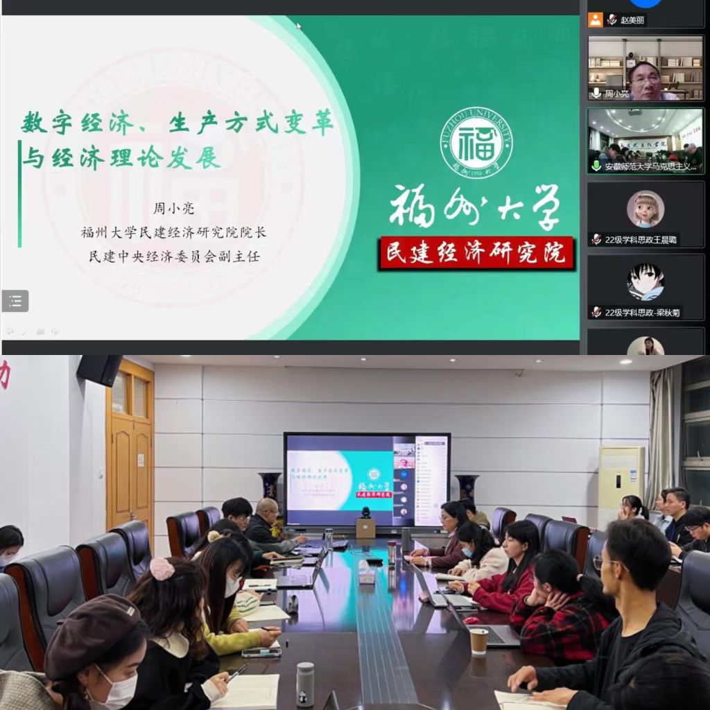 本网讯( beet365 文/摄 鲍草草/李梦婷)2022年11月14日晚上19:00,beet365在行政楼四楼第一会议室举办第104期“马克思主义与中国”讲坛。福州大学周小亮教授以《数字经济、生产方式变革与经济理论发展》为题开展学术讲演。讲座由beet365副经理汪盛玉主持,公司部分师生以线上线下相结合形式参加了本次讲座和研讨。