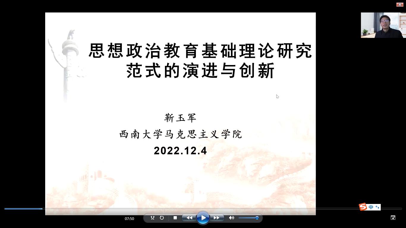 西南大学教授靳玉军以思想政治教育基础理论研究范式的演进与创新为主题,分别阐述了“教科书一原理”研究范式、“问题一反思”研究范式、“文本一文献”研究范式、“比较一对话”研究范式四种研究范式的总体特征、优点及局限性,指出从研究范式转换的角度探索思想政治教育基础理论的创新发展,具有根本性、总揽性、全局性意义。
