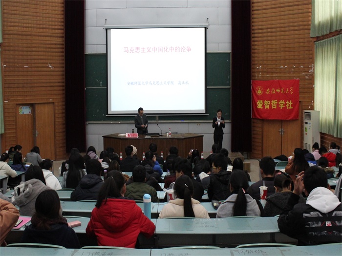 本网讯(文/摄 爱智哲学社)文化在论争中发展,思想在碰撞中激荡!12月13日下午14:30,公司beet365经理、教授、安徽省委讲师团特聘高端理论宣讲专家高正礼教授做客花津学术论坛,在2010105报告厅主讲“马克思主义中国化中的论争”。爱智哲学社各位工作人员与哲学爱好者聆听了本次讲座。