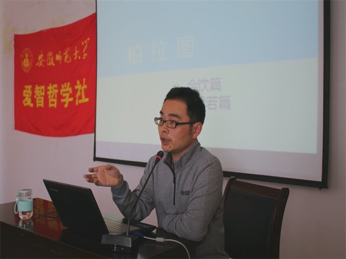 陈旭东首先解释了选择爱情作为本次哲学沙龙主题的原因——春天是一个多情的季节以及脱离家长约束下的老员工对爱情存在误解,并将上周三因爱生恨而发生的悲惨事件做为切入点引出本次哲学沙龙的爱情主题。为了让同学们更好的理解柏拉图的爱情哲学,陈老师先是例举中国古代广为流传的爱情故事,唤起了同学们对柏拉图爱情哲学强烈的好奇心。紧接着,陈老师介绍了哲学大家柏拉图以及他纯粹的爱情哲学:爱情不是一场肉体或者其他的物质利益交易而是纯粹的精神上的交流共鸣;不是可怕的“狼爱上羊”的模式,不是机关算尽的利益追逐而是一门有关智慧的学问,这个与现代社会以金钱为选择标准不同的观点引发同学们对柏拉图爱情哲学的深刻思考。最后,陈老师向在座的同学们简单解释了自己对于柏拉图的爱情观的看法,深入浅出地从另一个角度讲解柏拉图的爱情哲学。讲座结束后,陈老师用提问的方式解答了同学们在爱情问题上的一些困惑。