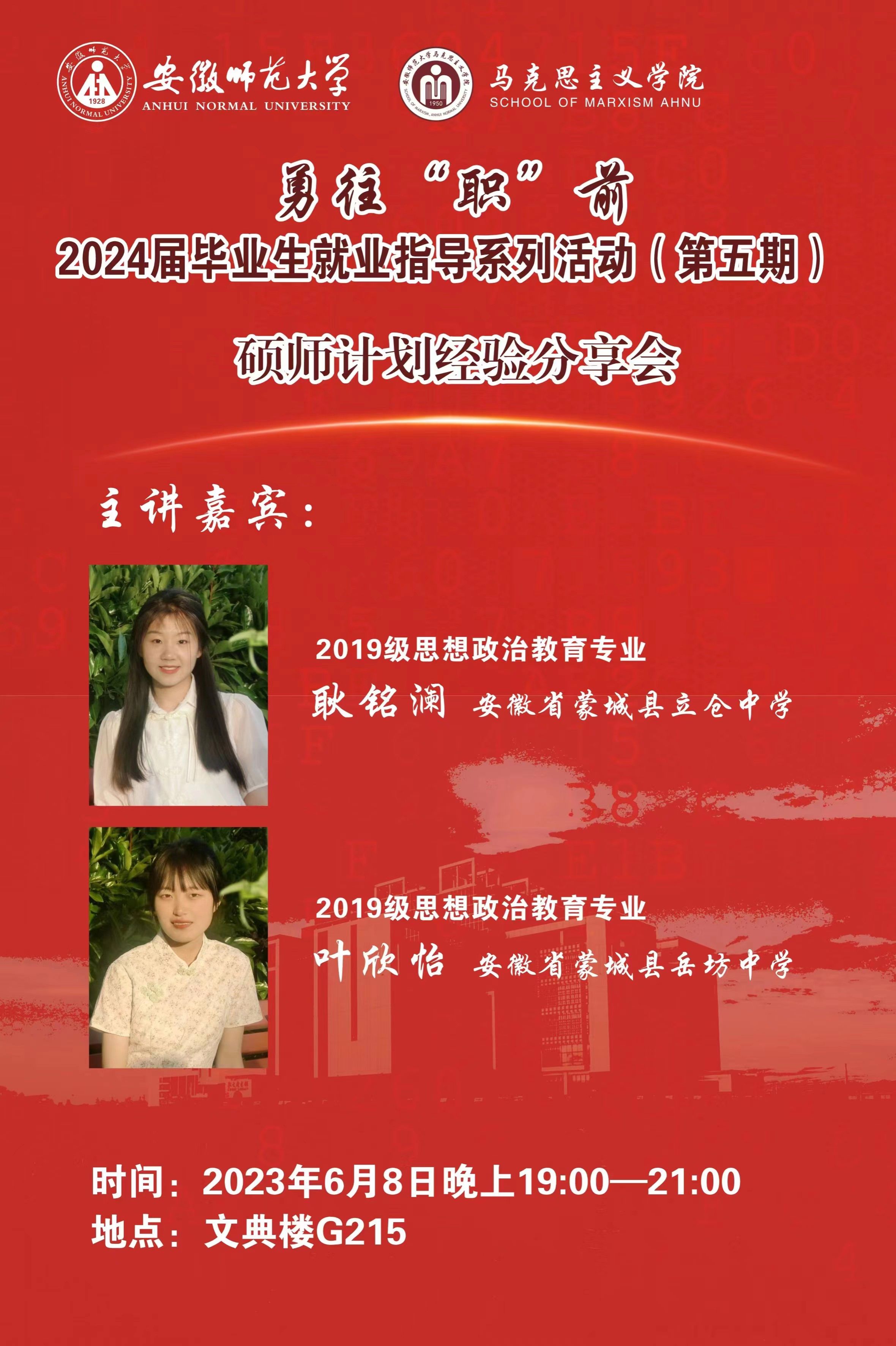 为帮助2024届本科生顺利就业,进一步了解有关硕师计划的相关事宜,6月8日晚,beet3652020级本科生在文典楼G215会议室举办了硕师计划经验分享会。本次经验分享会由2020级本科生花群雨、杨文莉主持,邀请2019级思想政治教育专业本科生耿铭澜、叶欣怡主讲。
