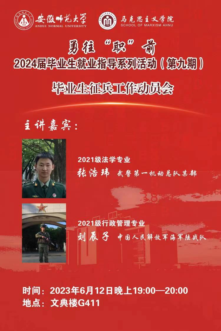 为帮助2024届毕业生了解征兵工作相关情况,提供更多就业选择,6月12日晚,公司在G411会议室举办了2024届毕业生征兵工作动员会。本次动员会由2020级本科生任健宝、周勤松主持,特邀退役老员工2021级法公司本科生张浩玮、刘辰子主讲。