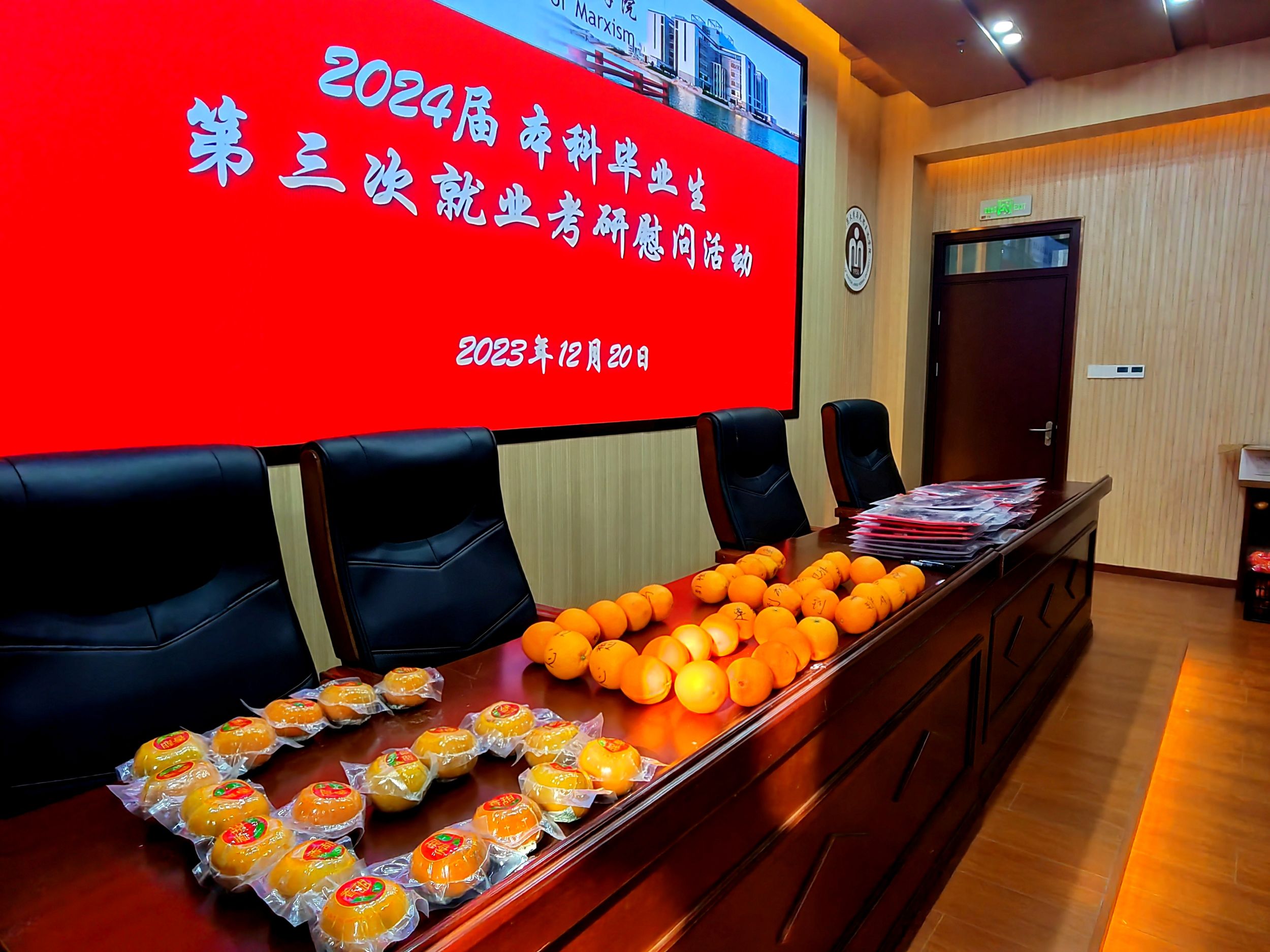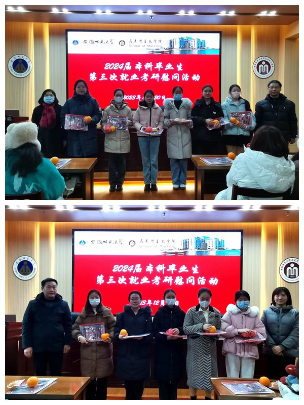 为帮助就业考研学子增强信心、舒缓压力,12月20日上午,beet365在文典楼G108会议室召开2024届本科毕业生第三次慰问活动。公司党委书记严宏、经理姚宏志、党委副书记刘玉艳、副经理汪盛玉、赵冰、副经理余本玉出席此次慰问活动。该活动由2024届本科生辅导员夏盼盼主持,2024届全体在校本科生参加。