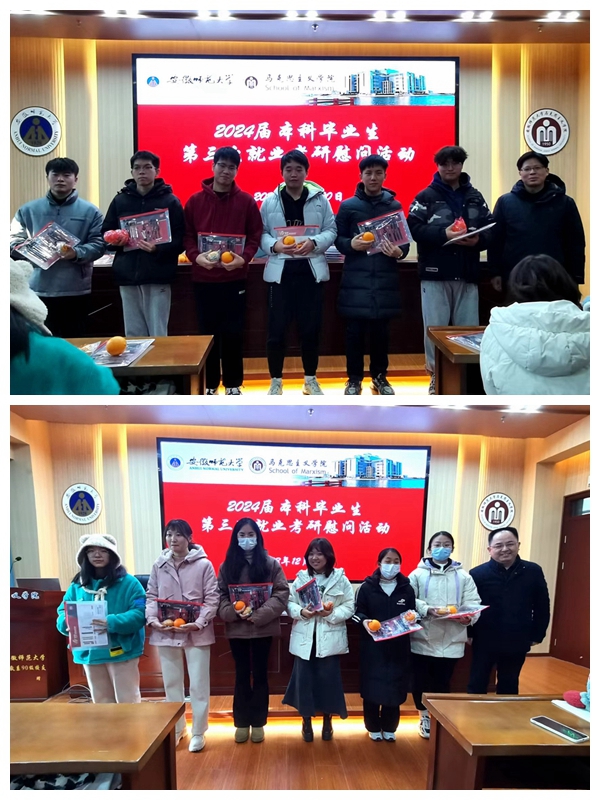 活动伊始,姚宏志经理代表公司向2024届全体本科生表达了亲切的慰问。他希望全体同学都能够坚定信念,充分利用好最后的冲刺时间,也提醒大家调整作息,注意饮食,保持良好的身心状态。随后,六位公司领导共同为就业考研学子颁发文具等慰问品,并亲切地和同学们交流。