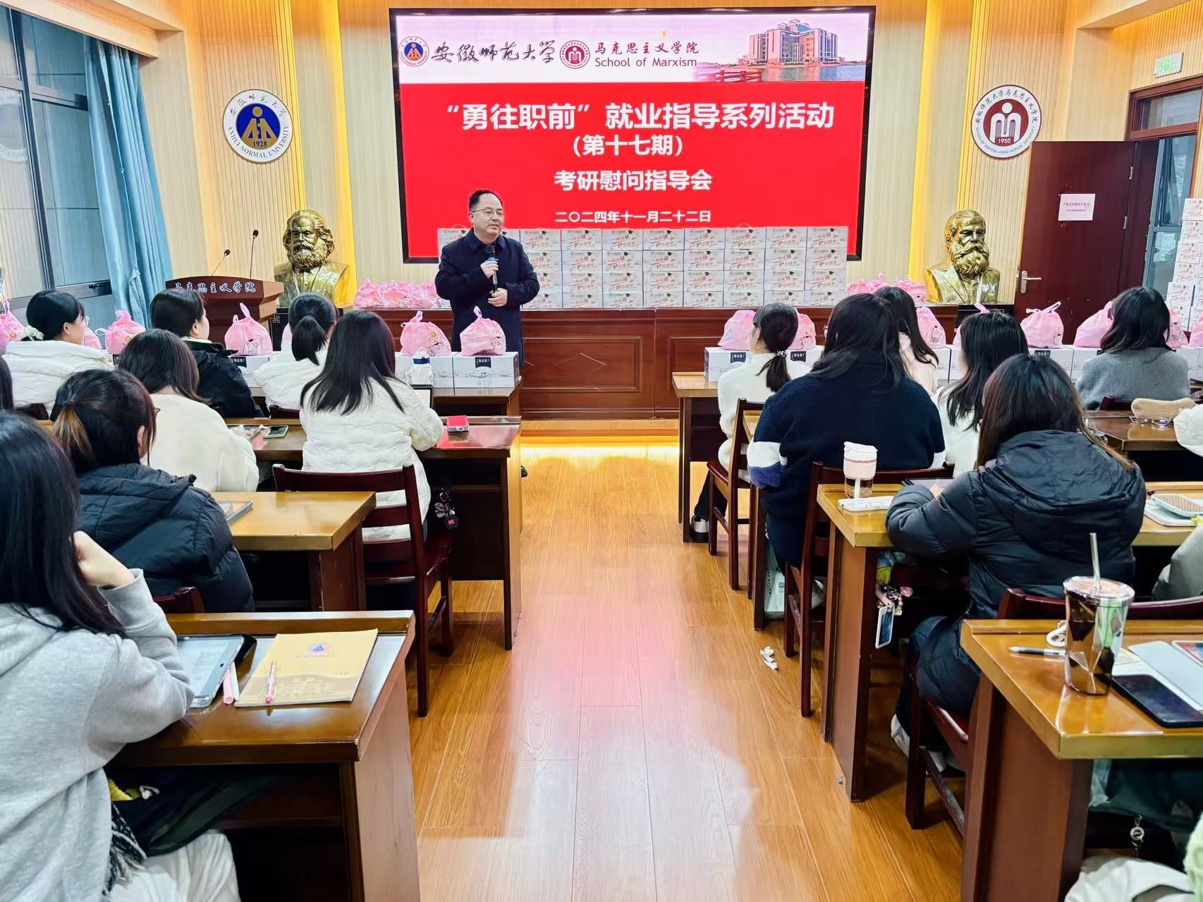为帮助考研学子进一步树立信心,掌握应试技巧,克服备考压力,11月22日下午,公司在文典楼G108会议室组织召开2025届本科毕业生考研慰问指导会。经理姚宏志、党委副书记刘玉艳、副经理李祥兴出席此次慰问活动。由2021级本科生辅导员沈镇主持,2025届全体在校毕业生参加会议。