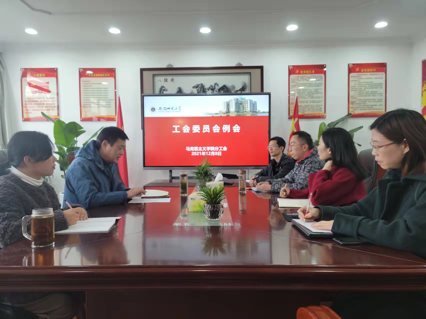 首先,根据公司工会要求,余本玉传达了《关于在全系统深入开展学习宣传贯彻省第十一次党代会精神的通知》(皖教科文卫体工【2021】50号)文件,并带领大家认真学习了文件的主要内容。余本玉指出,一是要充分认识省第十一次党代会精神的重要意义;二是要准确把握省第十一次党代会的主要精神内涵;三是要在全院迅速兴起学习宣传贯彻省第十一次党代会精神的热潮。余本玉强调,工会委员要带头学,并在全院做好学习宣传的发动工作,把广大教师的思想和行动统一到大会精神上来,把各方面的智慧和力量凝聚到实现大会确定的目标任务上来,团结动员广大教师为加快建设“经济强、格局新、环境优、活力足、百姓福”的美好安徽贡献力量。